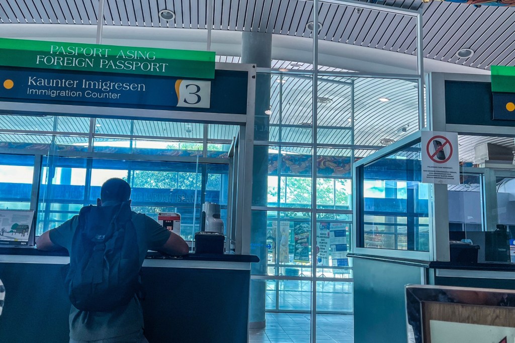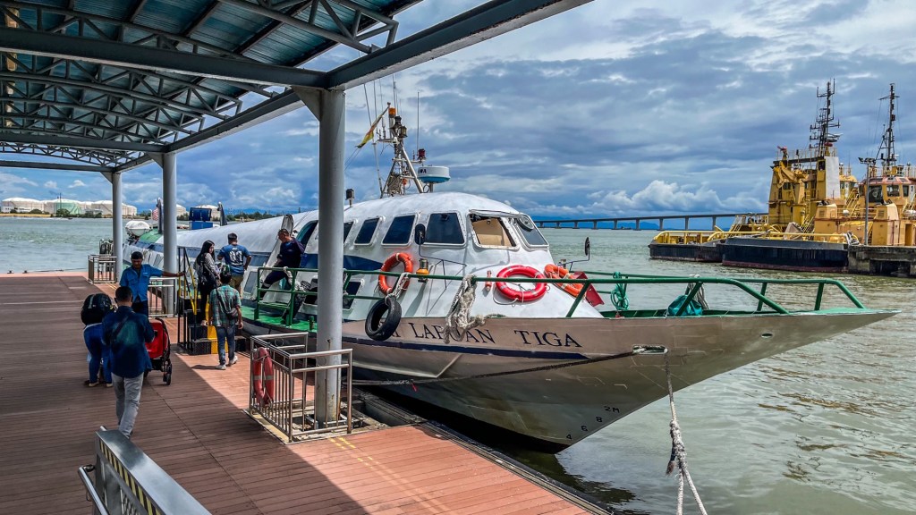 Em cerca de 1 hora e 15 minutos chegamos à ilha de Labuan e a entrada na Malásia foi bem tranquila. Os agentes se dividiam em dois guichês e a funcionária que nos atendeu registrou nossas digitais e tirou uma foto, tudo rapidamente —lembrando que aqui ainda estávamos com os passaportes europeus.