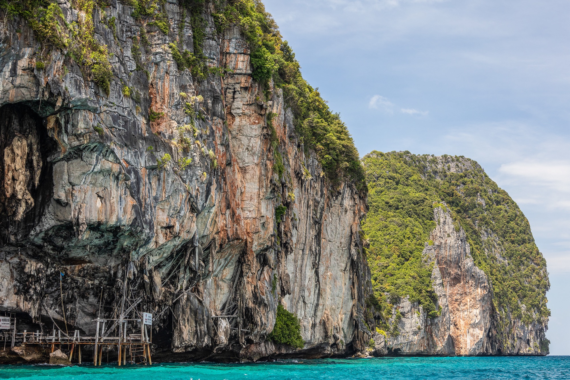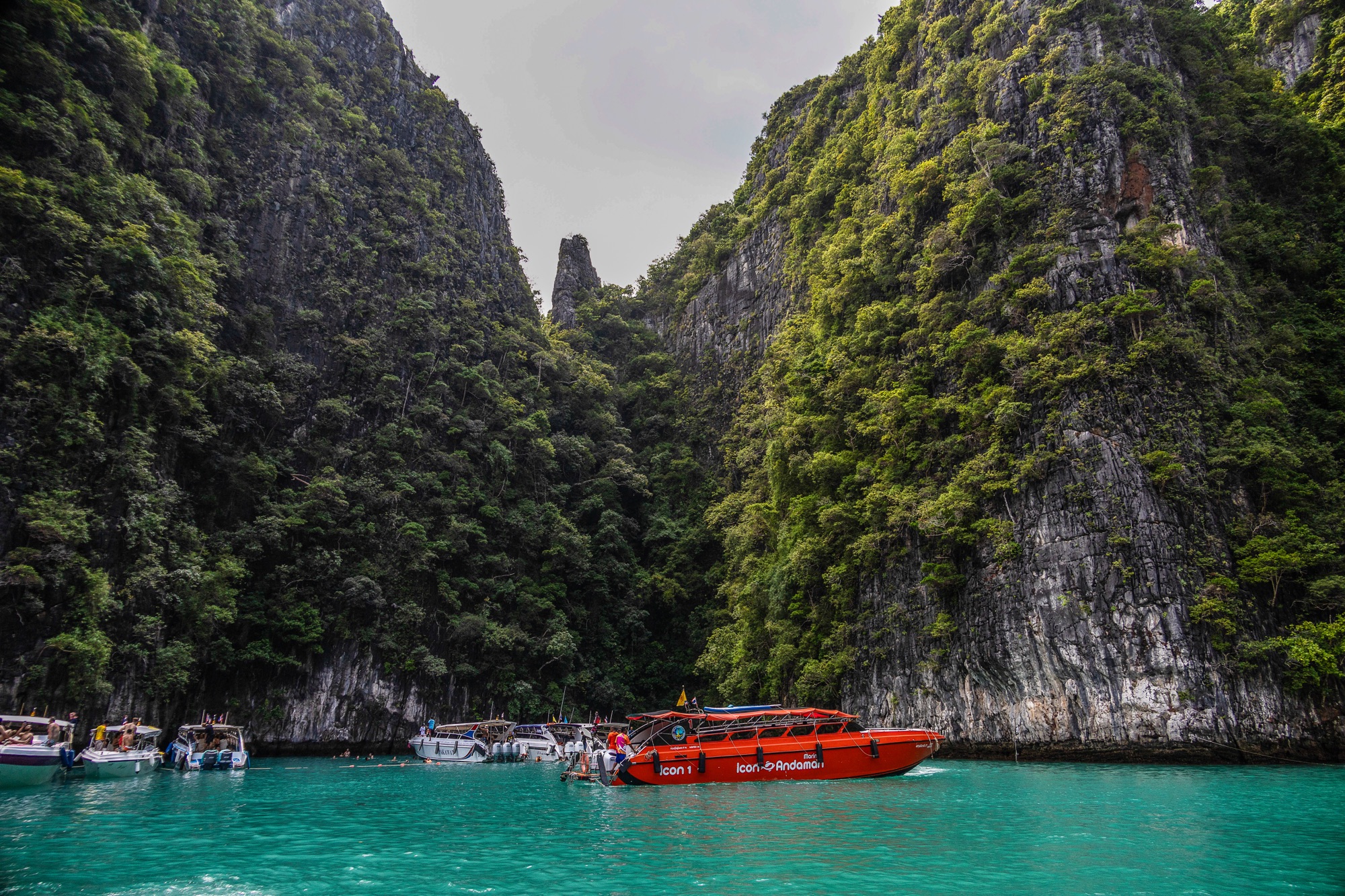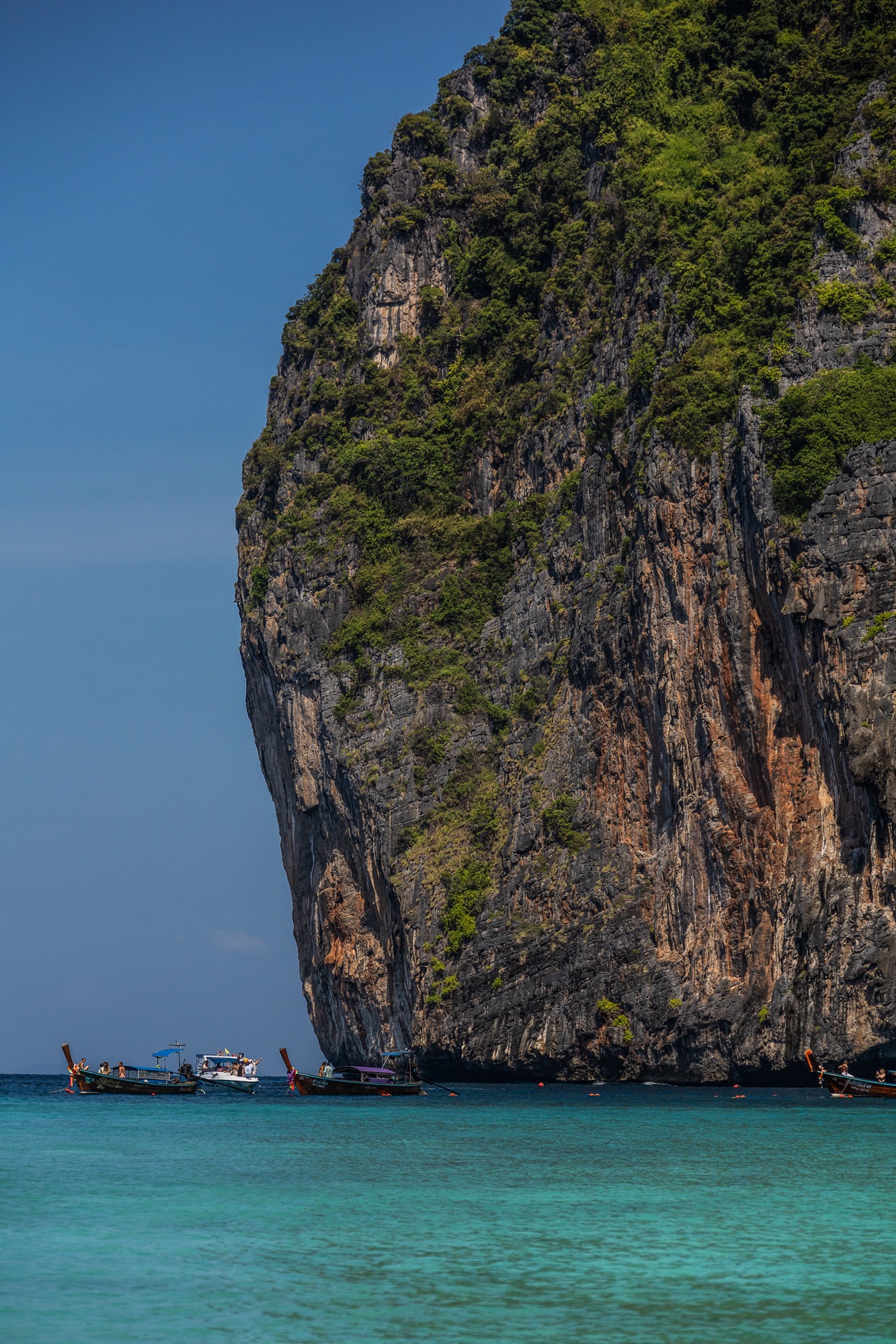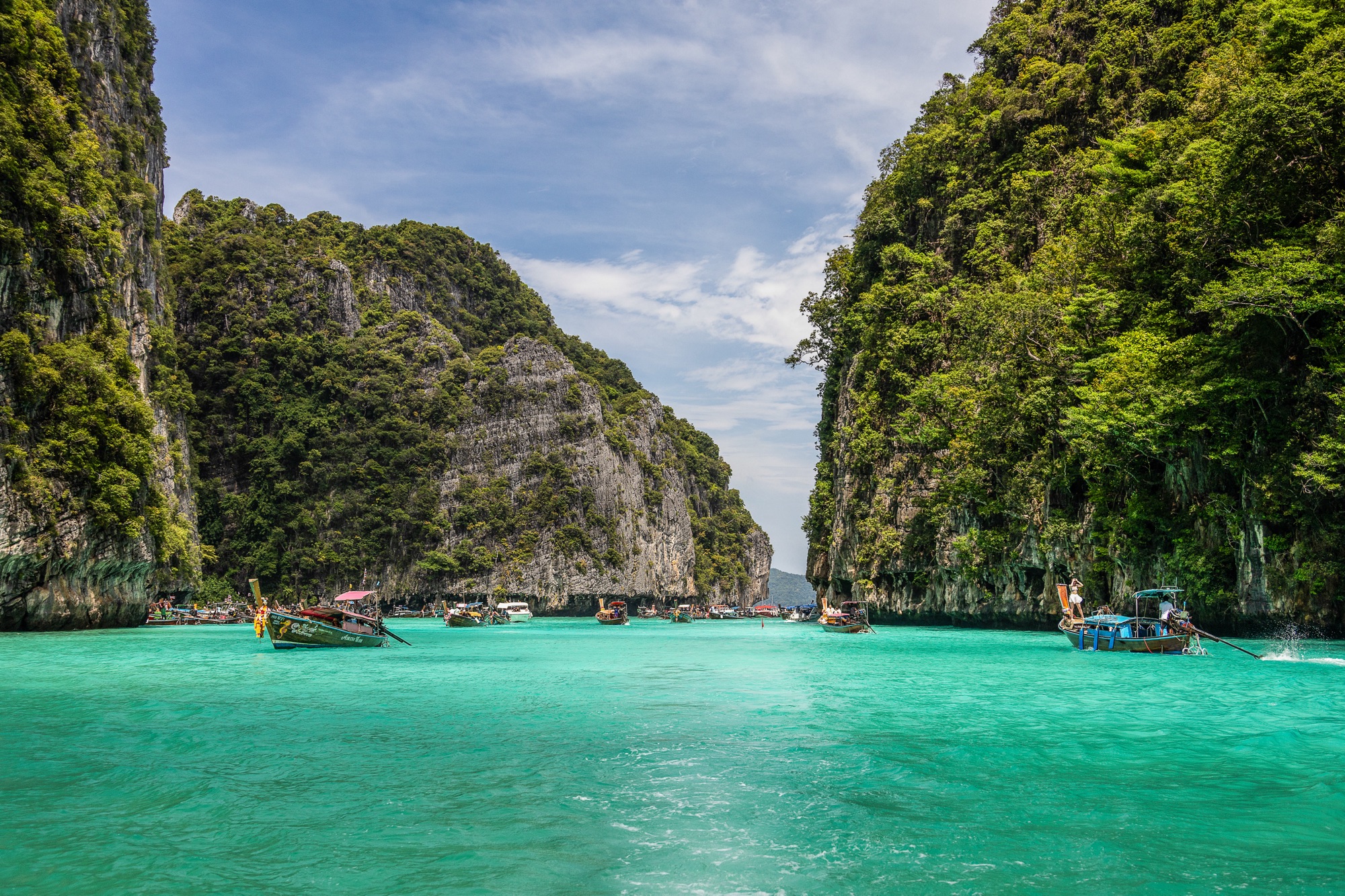 A praia é realmente muito bonita. E cheia. Com o sucesso do filme, o lugar chegou a receber 8.000 pessoas por dia e, diante do estrago de tanta gente, autoridades tailandesas proibiram a visitação de 2018 a 2022, para a reabilitação da vida marinha. Agora, há uma área onde barcos não entram e o visitante também não pode se banhar, só molhar os pés. Por volta das 11h de uma manhã de novembro, era possível achar uma brecha na água para garantir a foto com a baía de fundo —segundo o guia, Coco, em dezembro vai ter muito mais turistas ali.