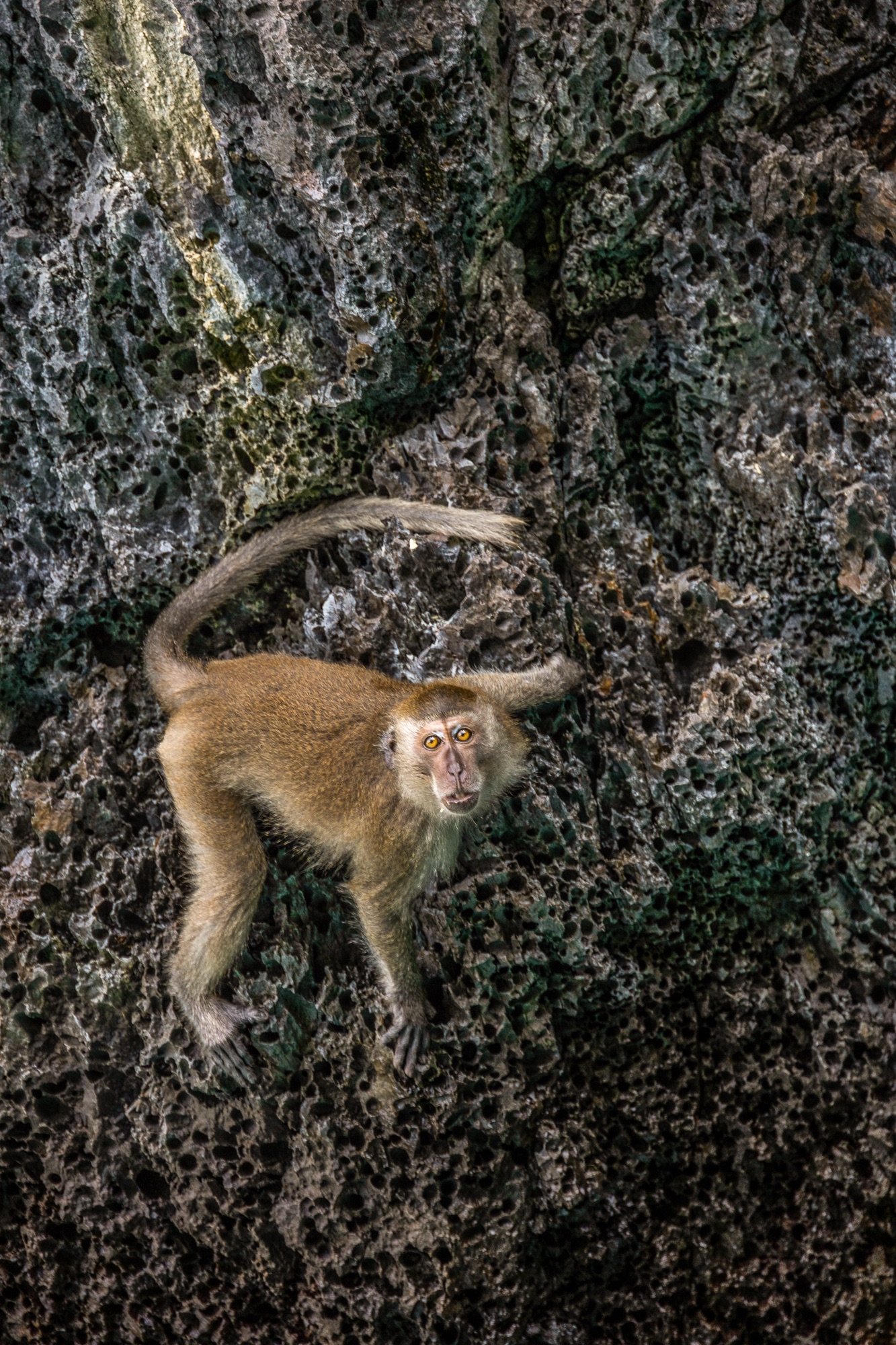 Na sequência, da lancha vimos a Caverna Viking, por onde, segundo o guia, nórdicos passaram dois séculos atrás, a lagoa Pileh, uma baía formada por rochas gigantes e com um trânsito intenso de barcos, e a Monkey Beach, em que, dependendo da sorte (ou da quantidade de frutas que surgem por ali), macacos dão o ar da graça em meio às árvores nas pedras.