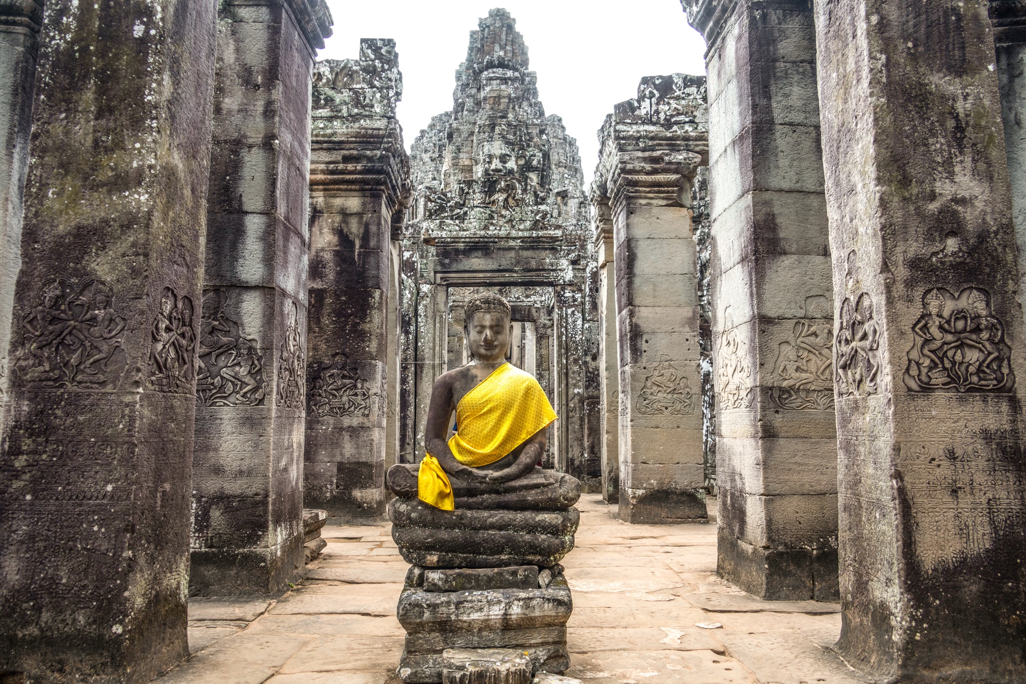 Porém, após ter sido saqueado por vietnamitas, Jayavarman se decepcionou com os deuses da religião e decidiu construir a cidade dedicada ao budismo, religião da esposa.