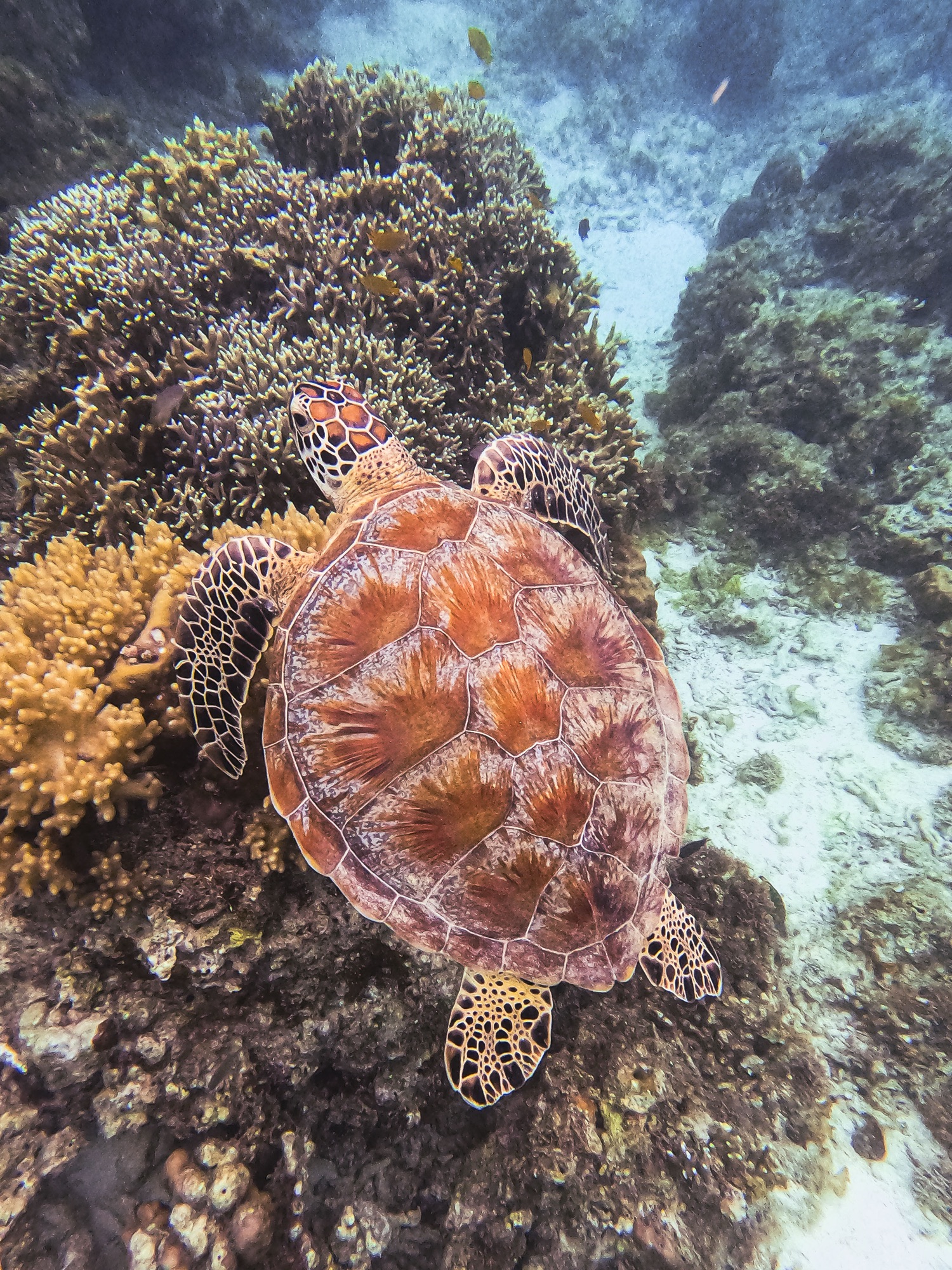 Se tivemos problemas com Wi-Fi e chuveiro —por dois dias ele não funcionou de primeira—, com as tartarugas a situação foi oposta. Em quase todas as nossas idas com snorkel ao mar, na primeira semana, vimos algum animal. Em certo momento, o desafio era tirar uma foto melhor do que no dia anterior.