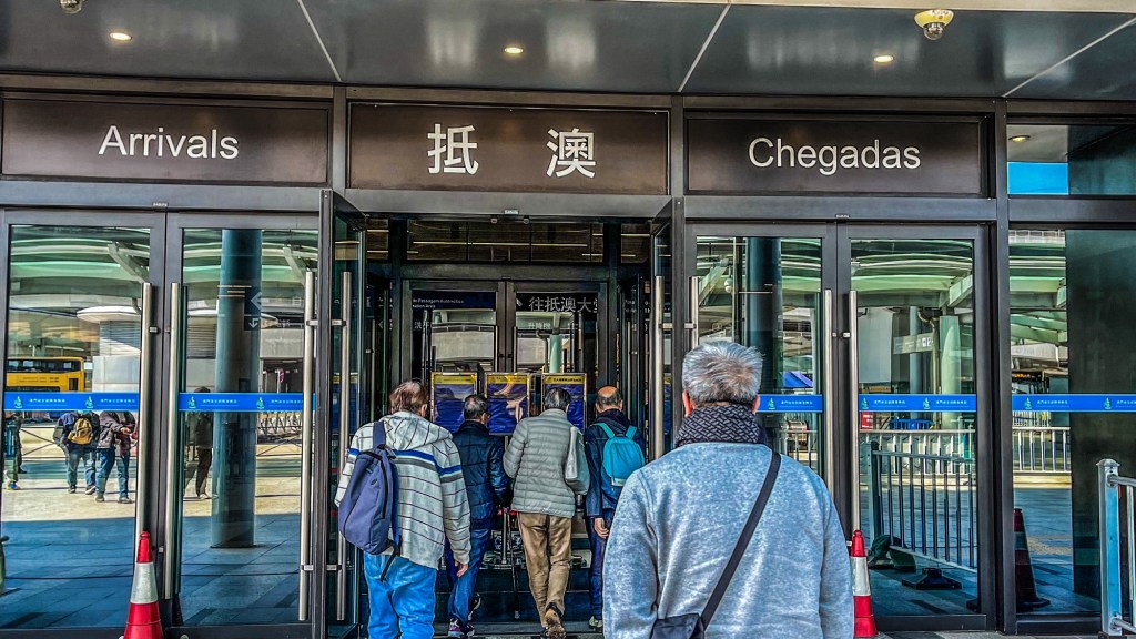 Ao chegarmos a Macau, após 45 minutos, precisamos passar pelos agentes de imigração. O prédio também é bem grande, e o oficial não fez perguntas. Assim como em Hong Kong, em vez de carimbar o passaporte, ele deu um papelete com nossos dados pessoais e a informação de que podemos ficar 90 dias na região.