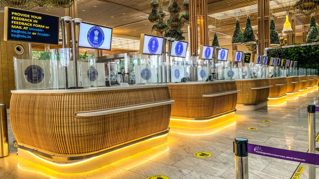 O voo partiu às 12h40 e, sem incidentes, levou 2h30min. Pousamos no terminal doméstico do Aeroporto Internacional Kempegowda, e um rápido transfer nos conduziu para a área de voos para o exterior.