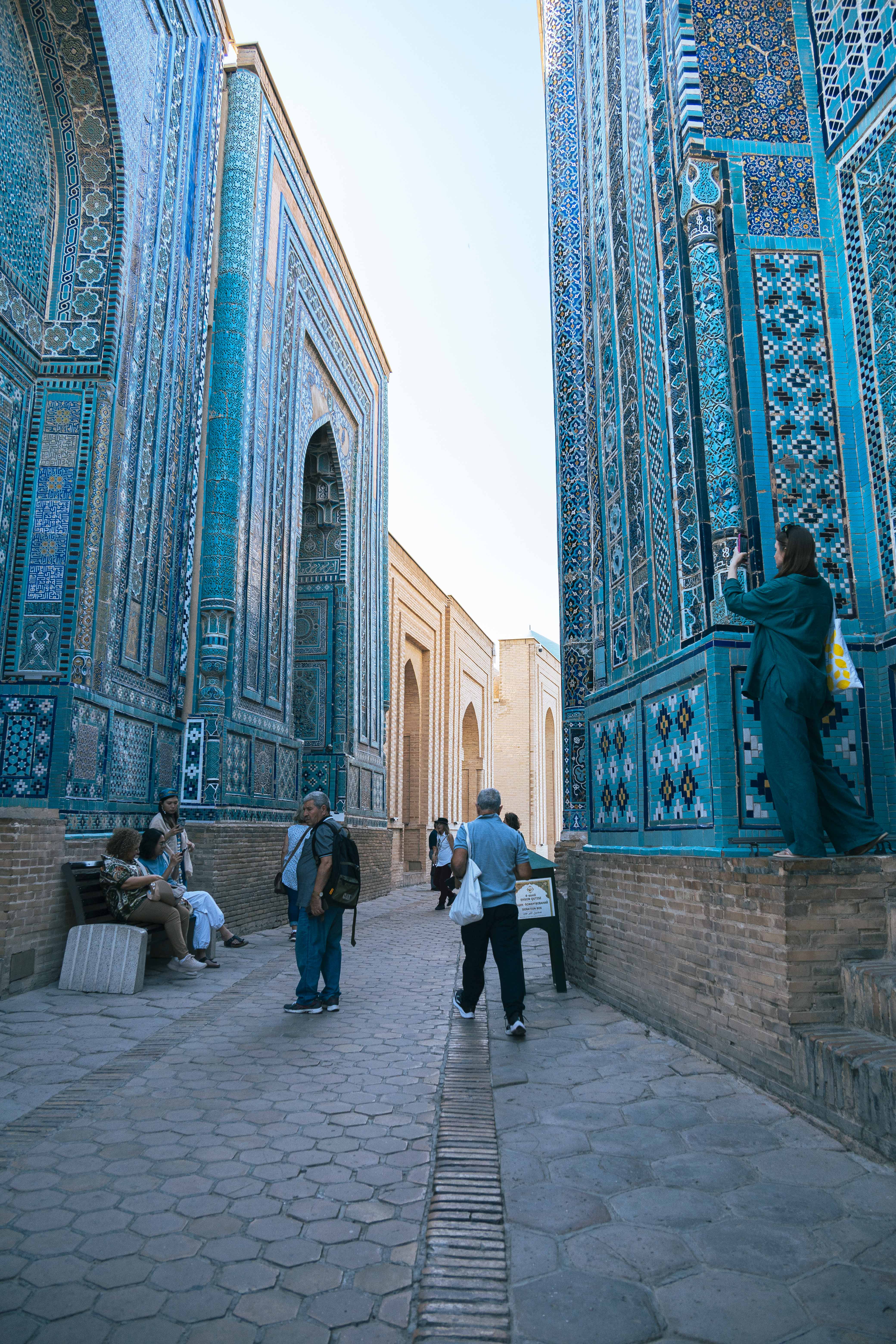 Pelo caminho estão ainda o mausoléu e a mesquita Bibi Khanym, construídos em homenagem à esposa de Tamerlão, Saray Mulk Khanym, e o bazar Siyob e suas variadas frutas secas, verduras e artesanatos. No fim da rua fica a necrópole Shah-i-Zinda e seus mausoléus construídos do século 11 ao 15 —dizem até que o primo de Maomé está enterrado lá.