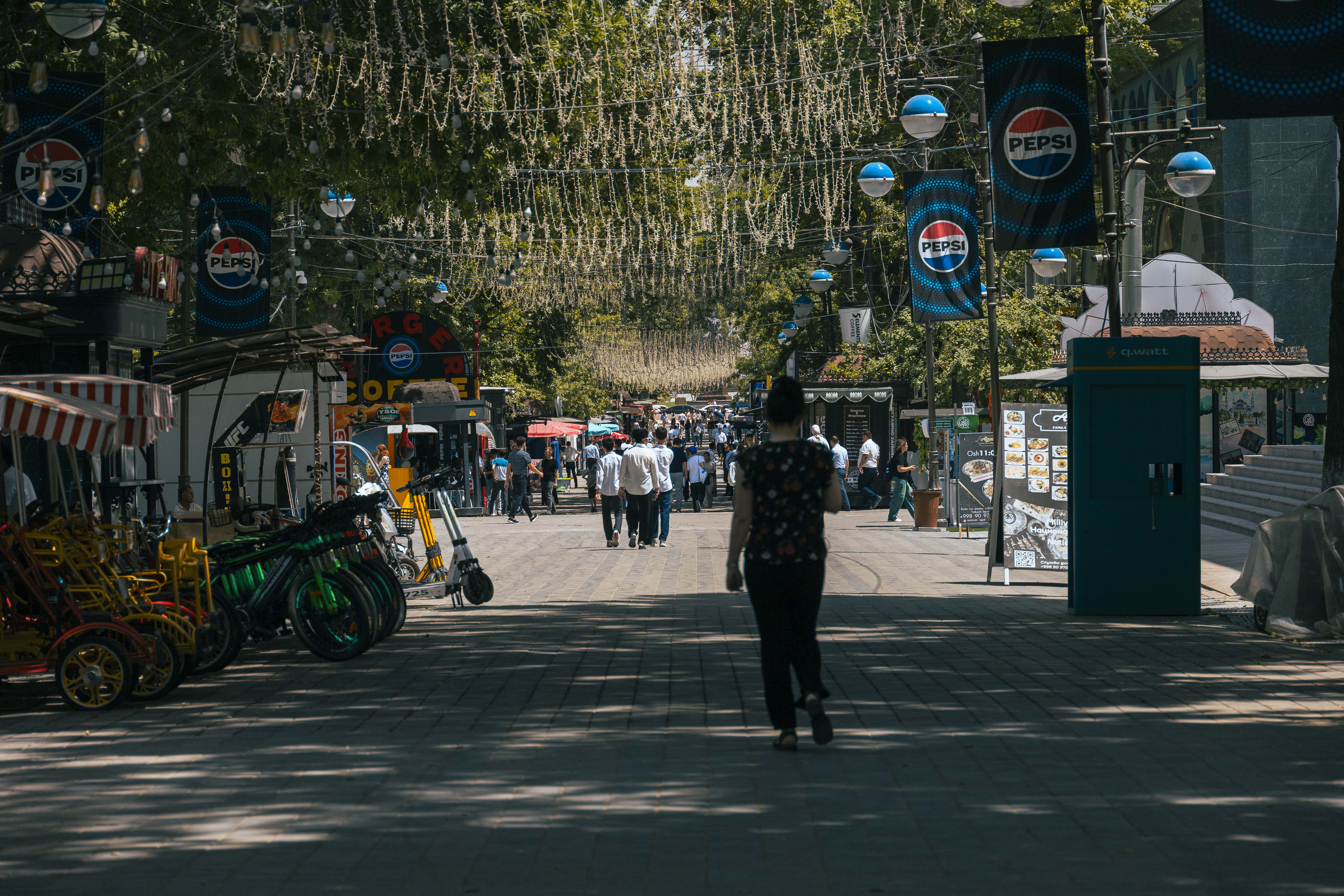 Tashkent, obviamente, não é só história. Há várias cafeterias e restaurantes a preços convidativos. Também passeamos por muitas ruas arborizadas, e algumas outras que era puro asfalto, nos lembrando as de São Paulo. Uma região, porém, que nos agradou bastante foi a da rua Saligokh. Andamos por ali na hora do almoço, em meio a muitos quiosques de fast food, sorvete e jogos, como de arco e flecha.