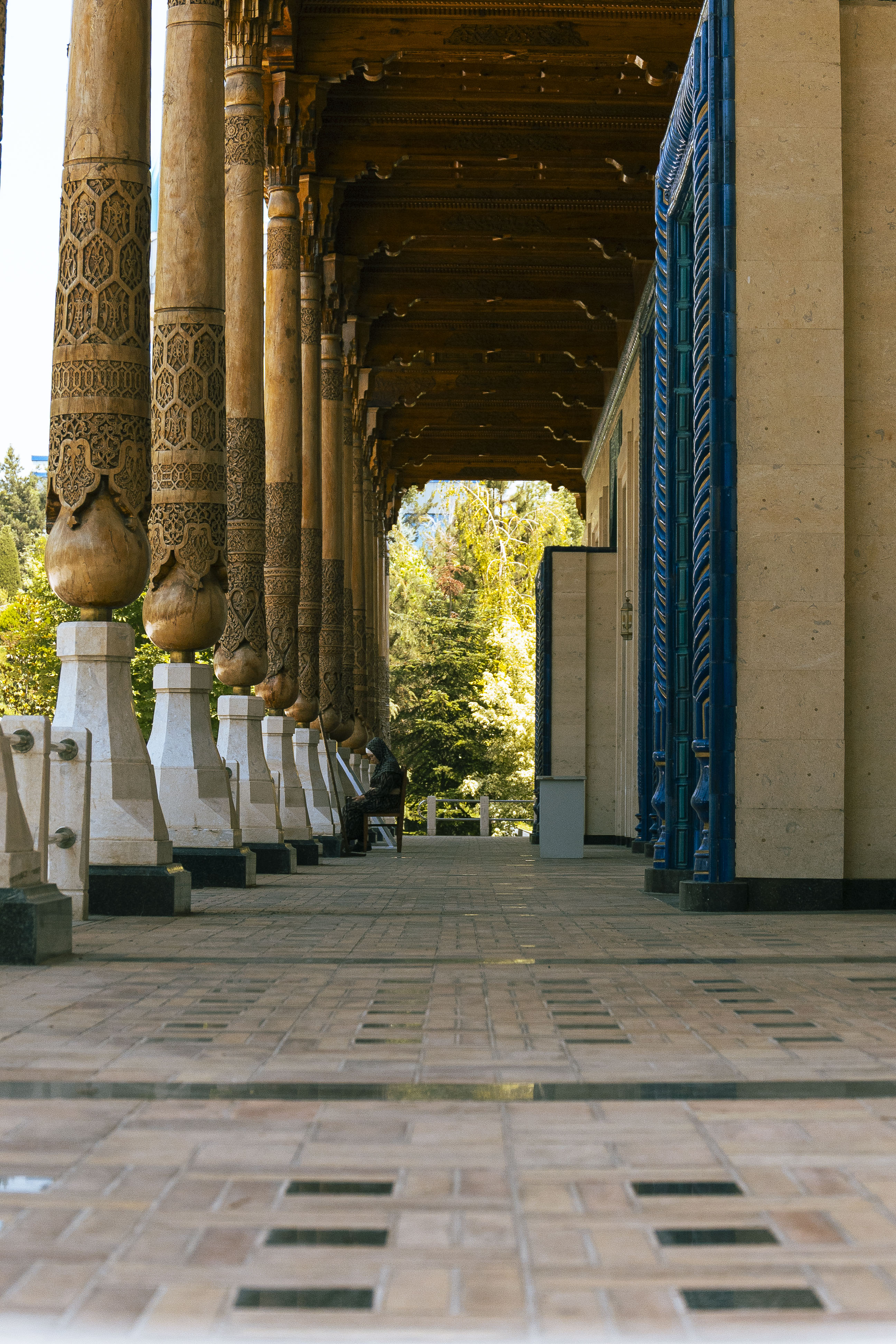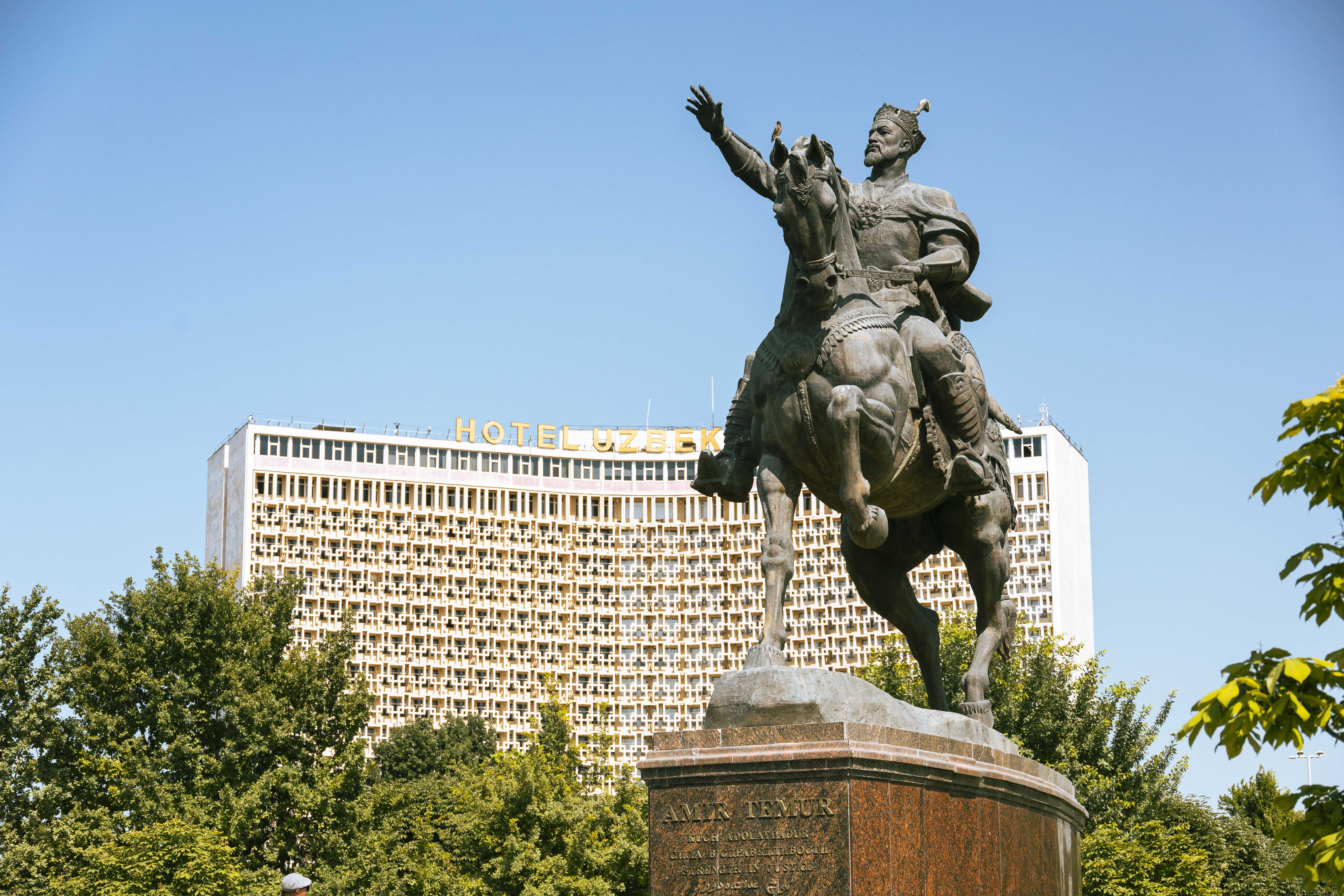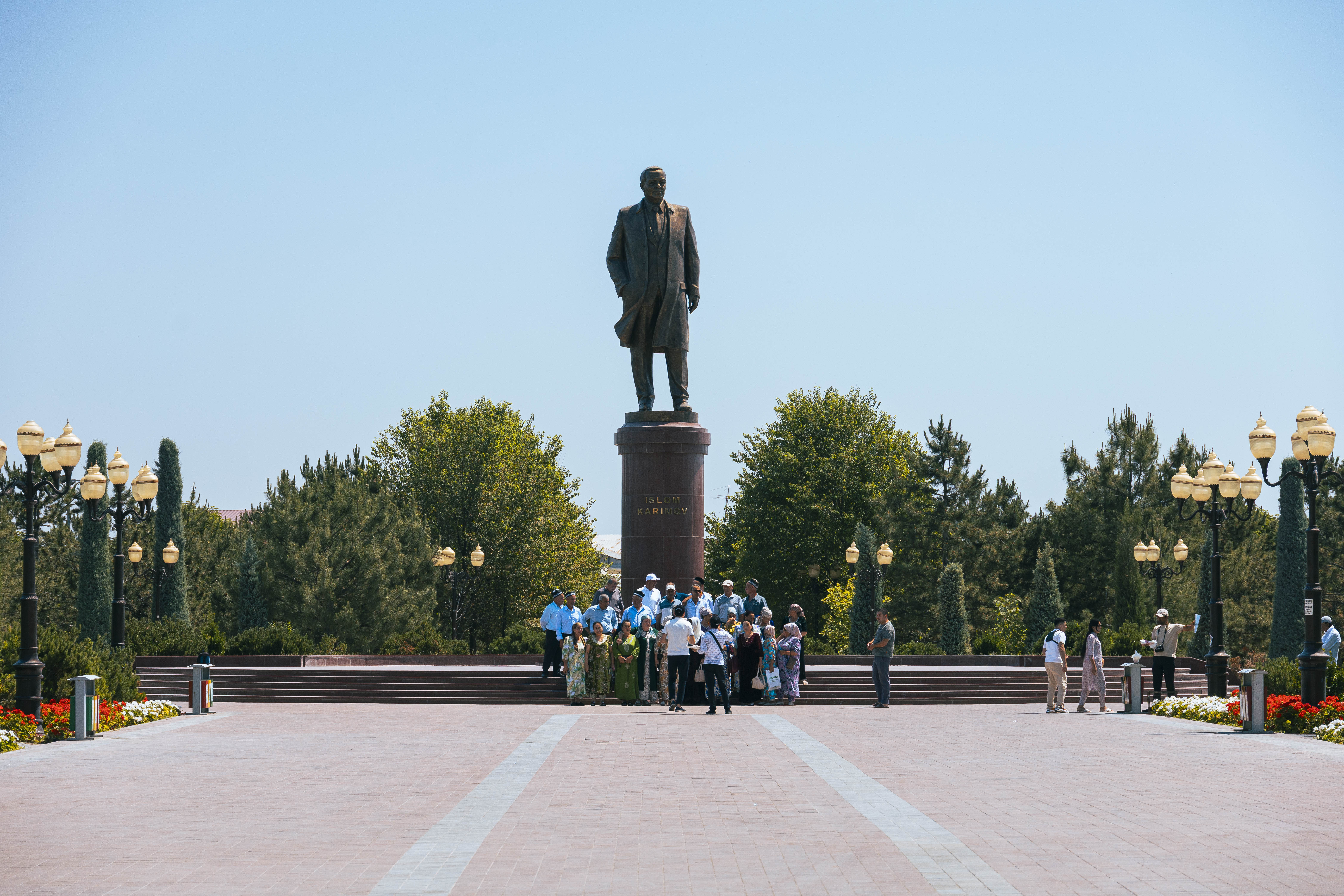 Do Reguistão sai uma rua exclusiva para pedestres que leva a outros grandes marcos da cidade, além de reunir um bom número de cafés, restaurantes e lojinhas de suvenir —um refresco para o calor de 40ºC que enfrentamos em maio. Já em frente ao complexo há uma estátua de Islam Karimov, que comandou o país de 1991, após o colapso da União Soviética, até sua morte, em 2016 (a Ásia Central não é muito fã da troca de governantes).