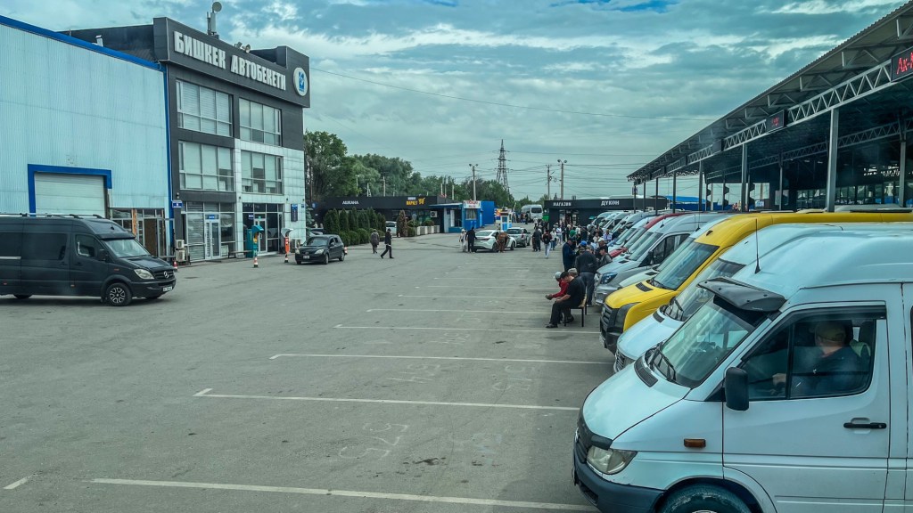Bishkek fica muito próxima à fronteira, e a rodoviária de onde partem os veículos para o vizinho —Bishkekskiy Avtovokzal, no norte da cidade— é praticamente na borda do país. Pegamos um Yandex (460 soms/R$ 31,50), o Uber da Ásia Central, até lá. Há ônibus em vários horários do dia —8h, 10h, 12h, 14h, 16h e 18h—, por 600 soms (R$ 41,50).