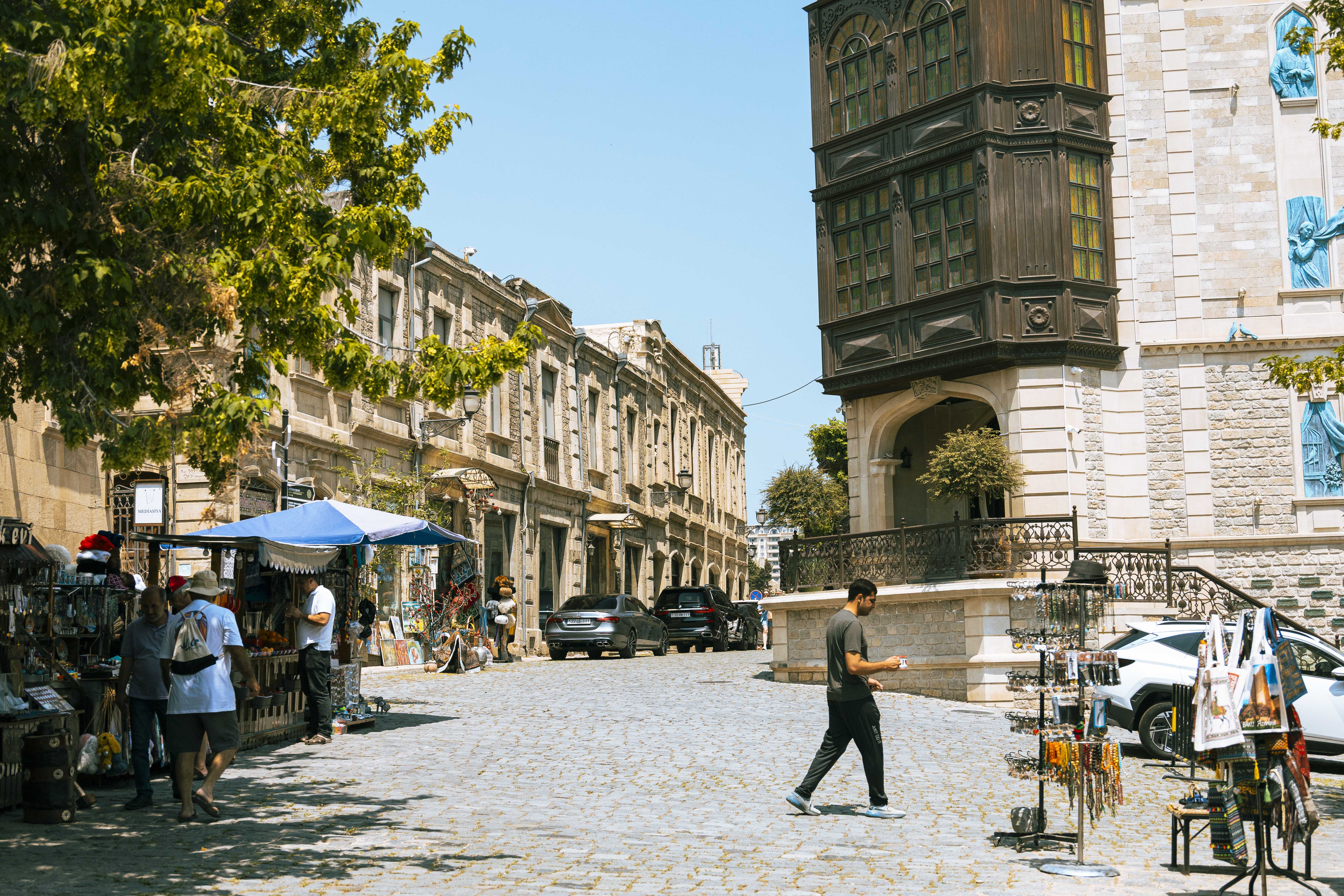 Nas ruas, não percebemos tanta herança do período socialista, como os prédios quadradões, tão comuns na Ásia Central. O idioma, porém, ainda pode ser usado na capital. Mesmo que a língua oficial seja o azerbaijano, muitas pessoas falam russo. Entre os jovens, é fácil achar quem saiba inglês. Uma facilidade para quem pretende viajar pelo país.