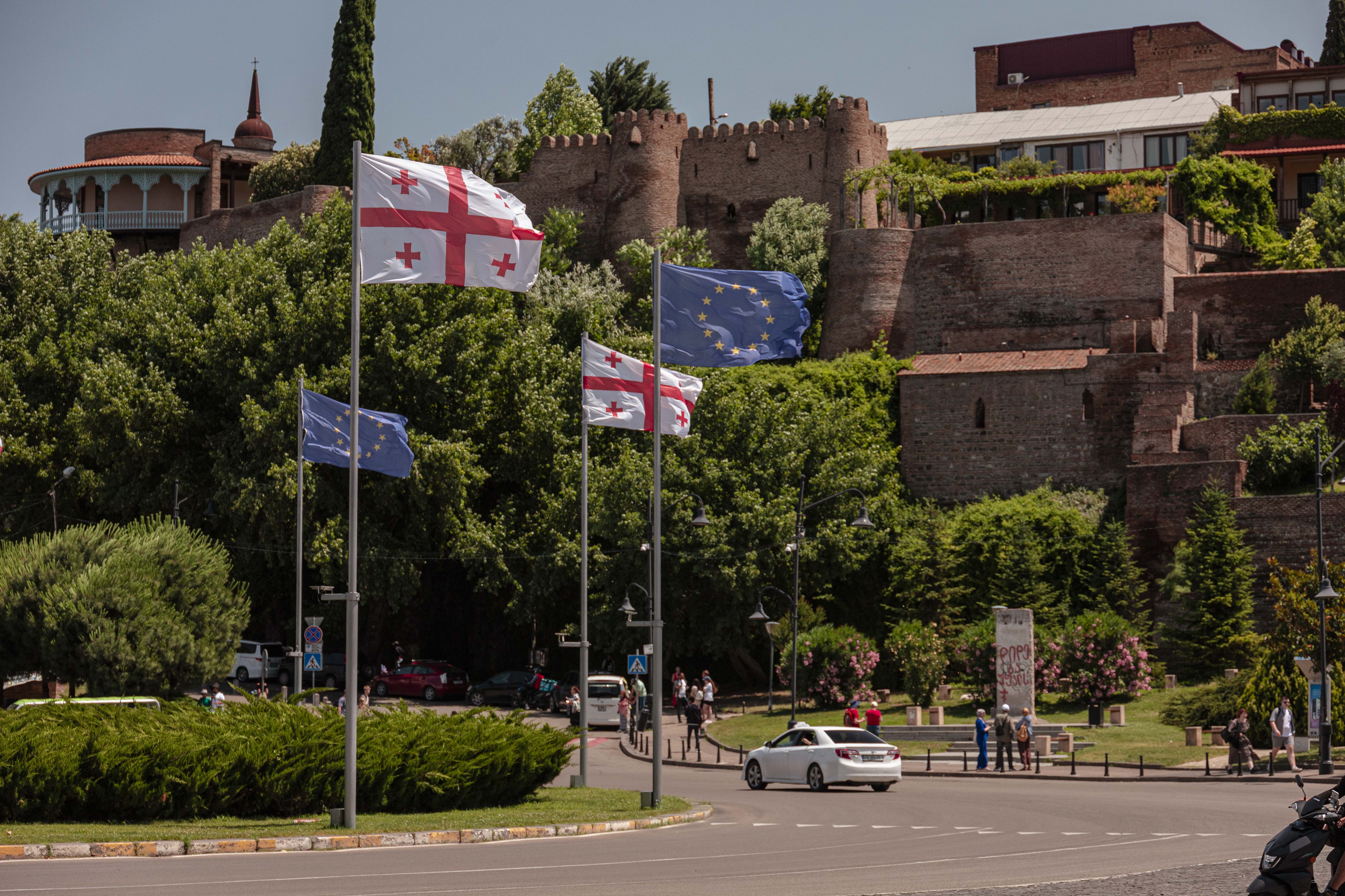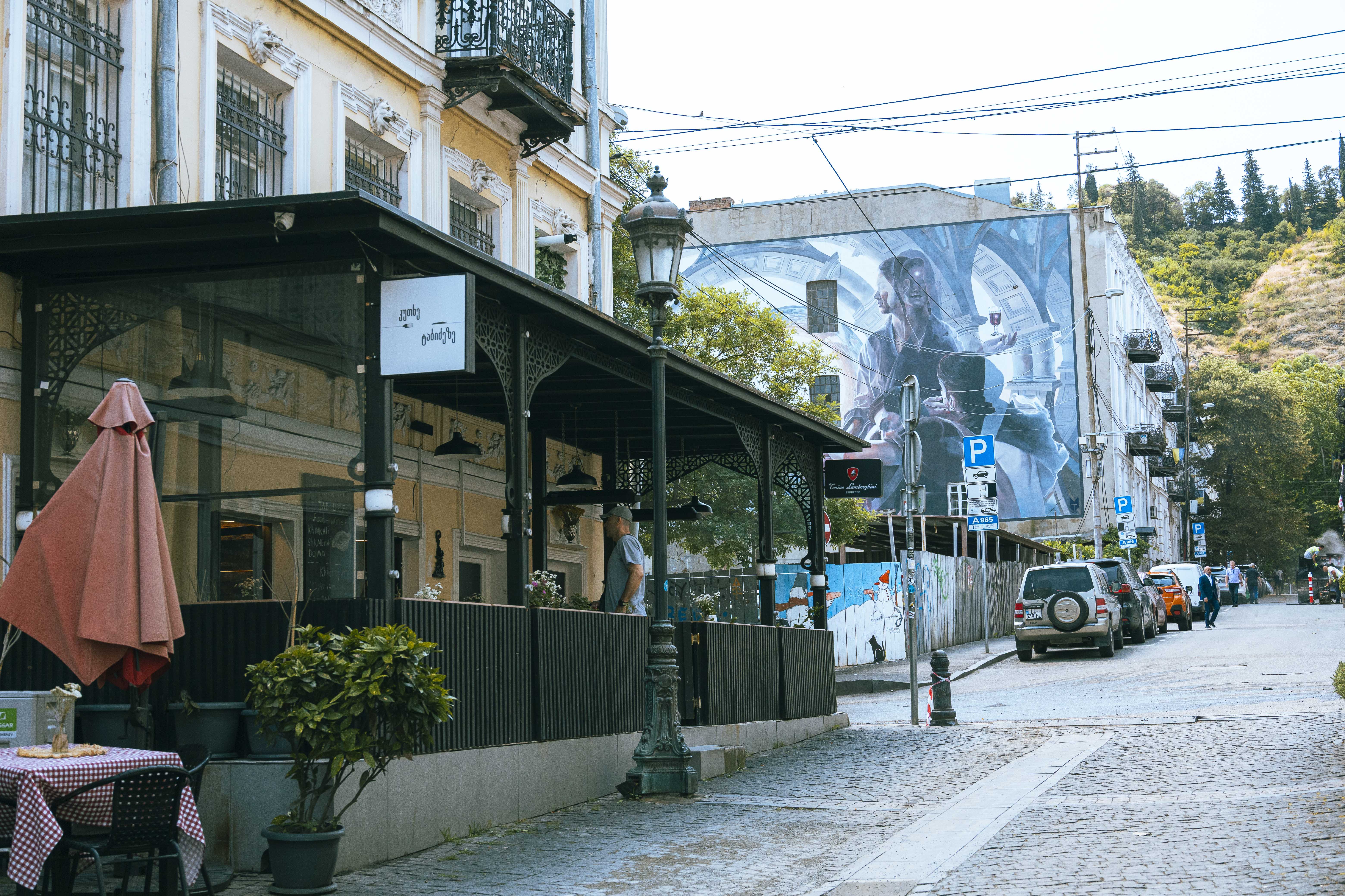 Na capital e maior cidade do território, onde vive um terço da população georgiana, ficamos num hotel perto da importante e central avenida Rustaveli. Enquanto ela é plana e agradável de se passear, o entorno é cheio de morros, e tínhamos que subir um tanto para nossa hospedagem. Pelo menos o café da manhã tinha uma vista panorâmica.