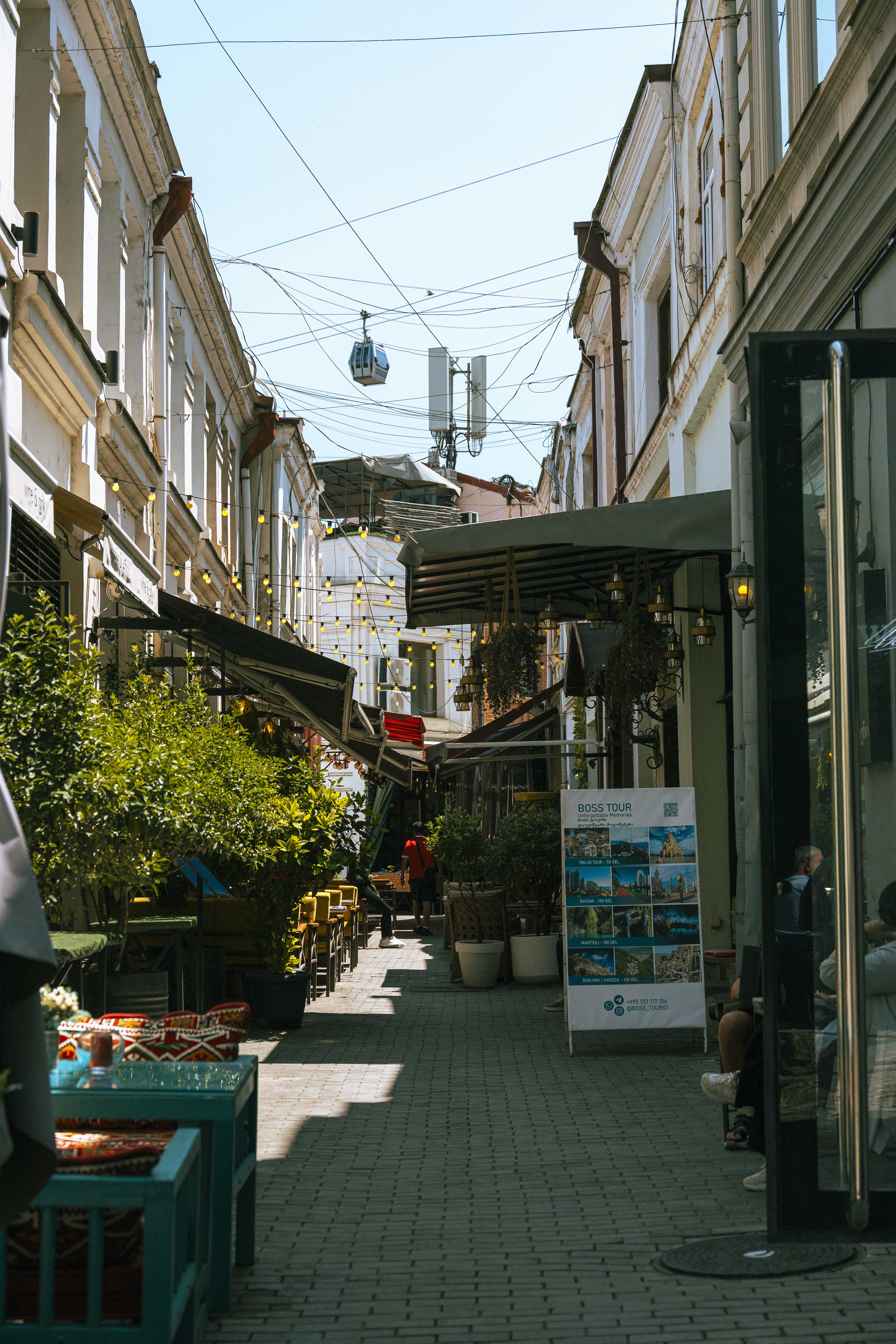 Seguindo pela avenida Rustaveli, chega-se à Praça da Liberdade, uma enorme rotatória, e à cidade antiga, uma região bem arborizada e com várias lojas de suvenir, assim como restaurantes típicos. É possível saborear o khachapuri, um dos mais famosos pratos georgianos, em vários lugares por ali.