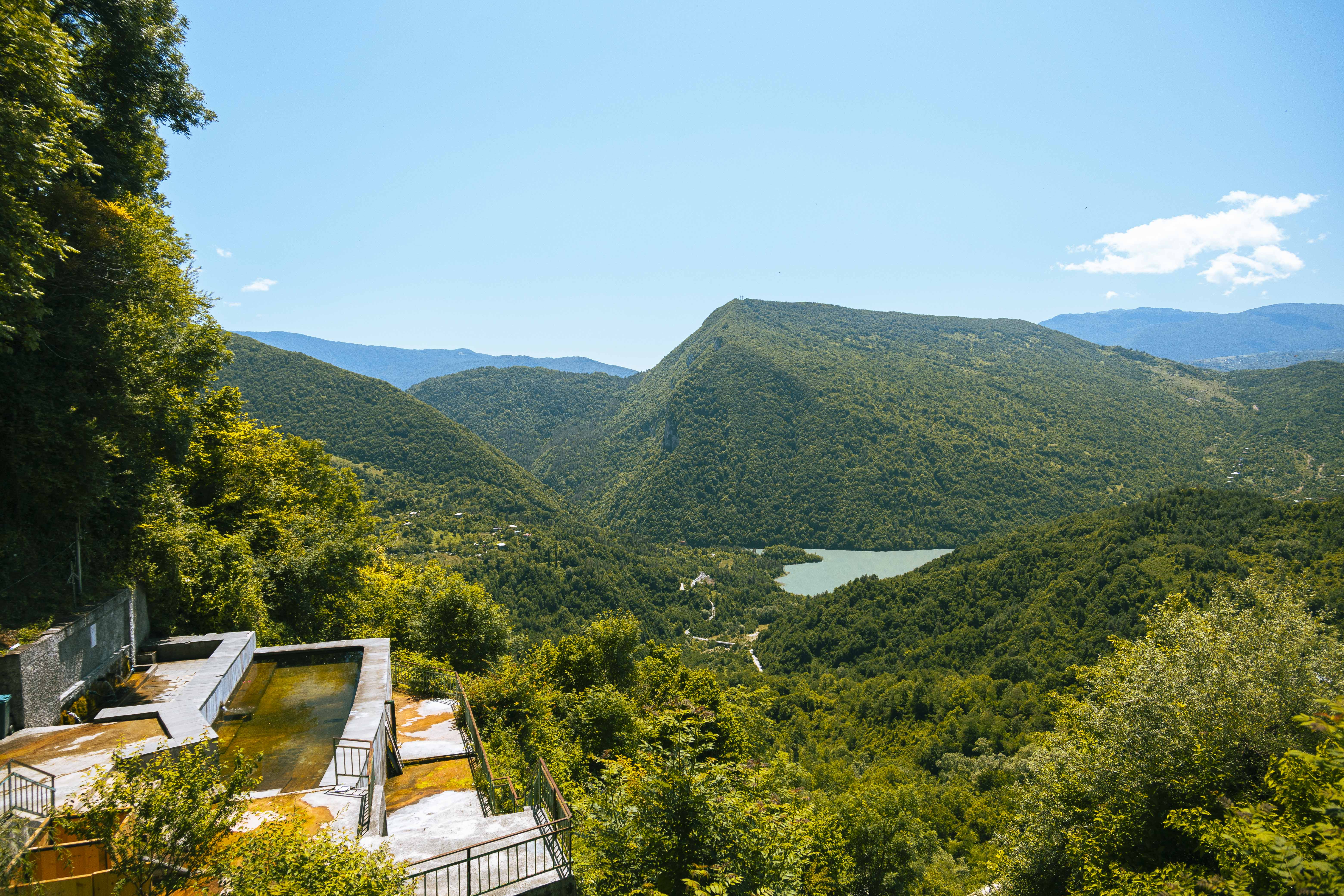 Dormimos em Chiatura e no dia seguinte dirigimos até Khvanchkara, passando pela estrada mais linda e sinuosa que vimos, cercada de paredões. Vimos os pilares Sairme e fomos à Piscina Secreta, um reservatório que aproveita uma das muitas quedas d’água da região. Não entramos lá, mas a vista panorâmica valeu a visita.