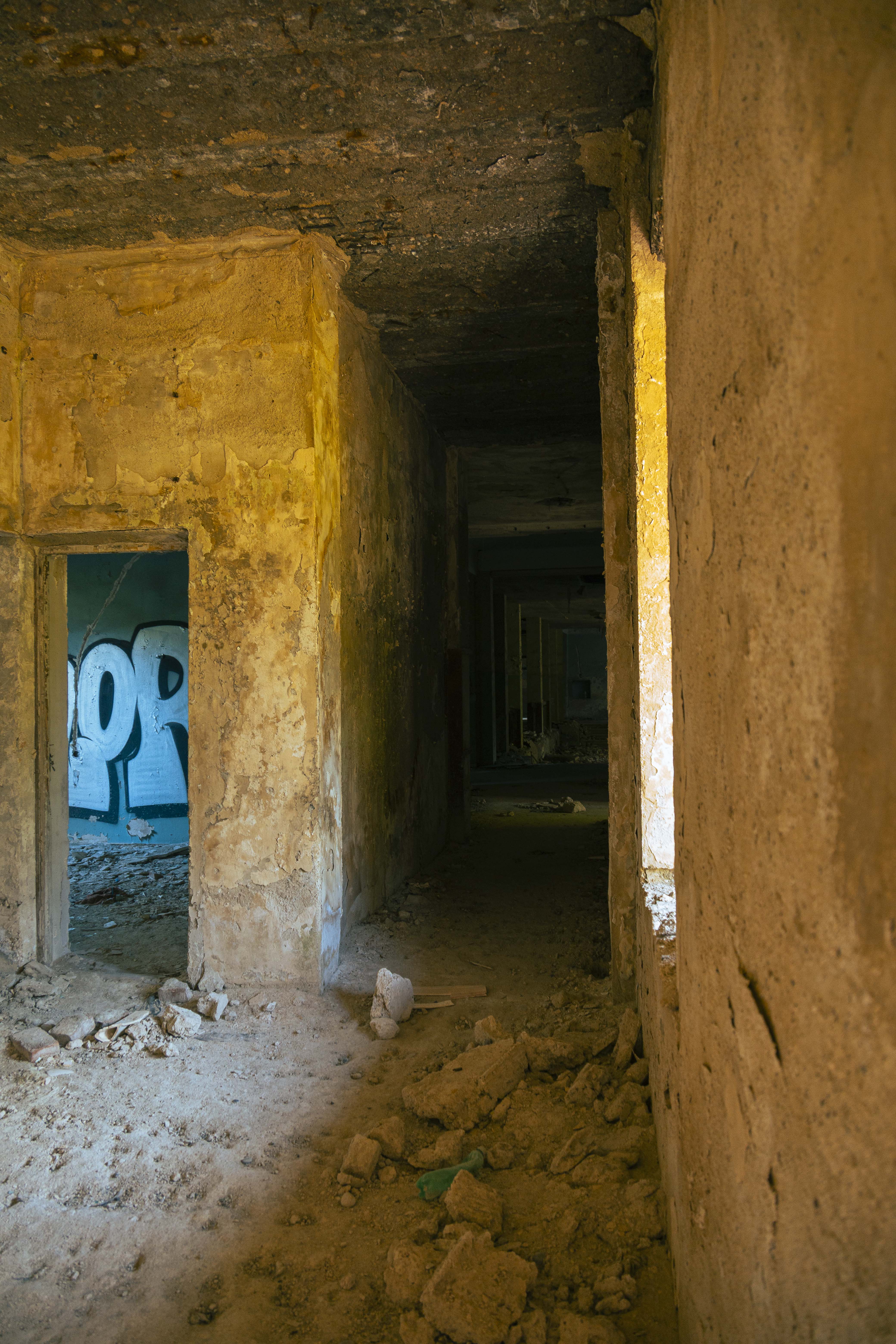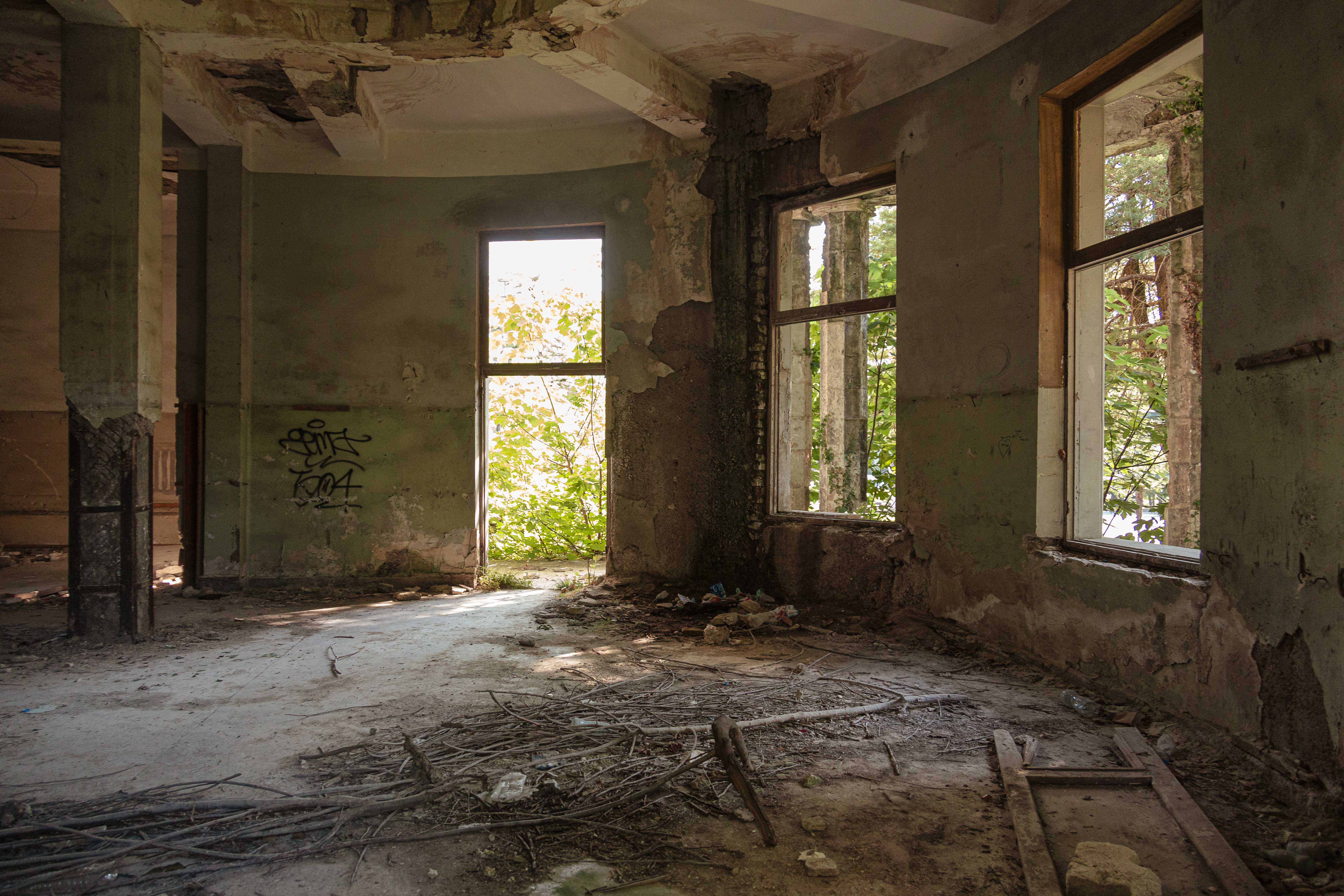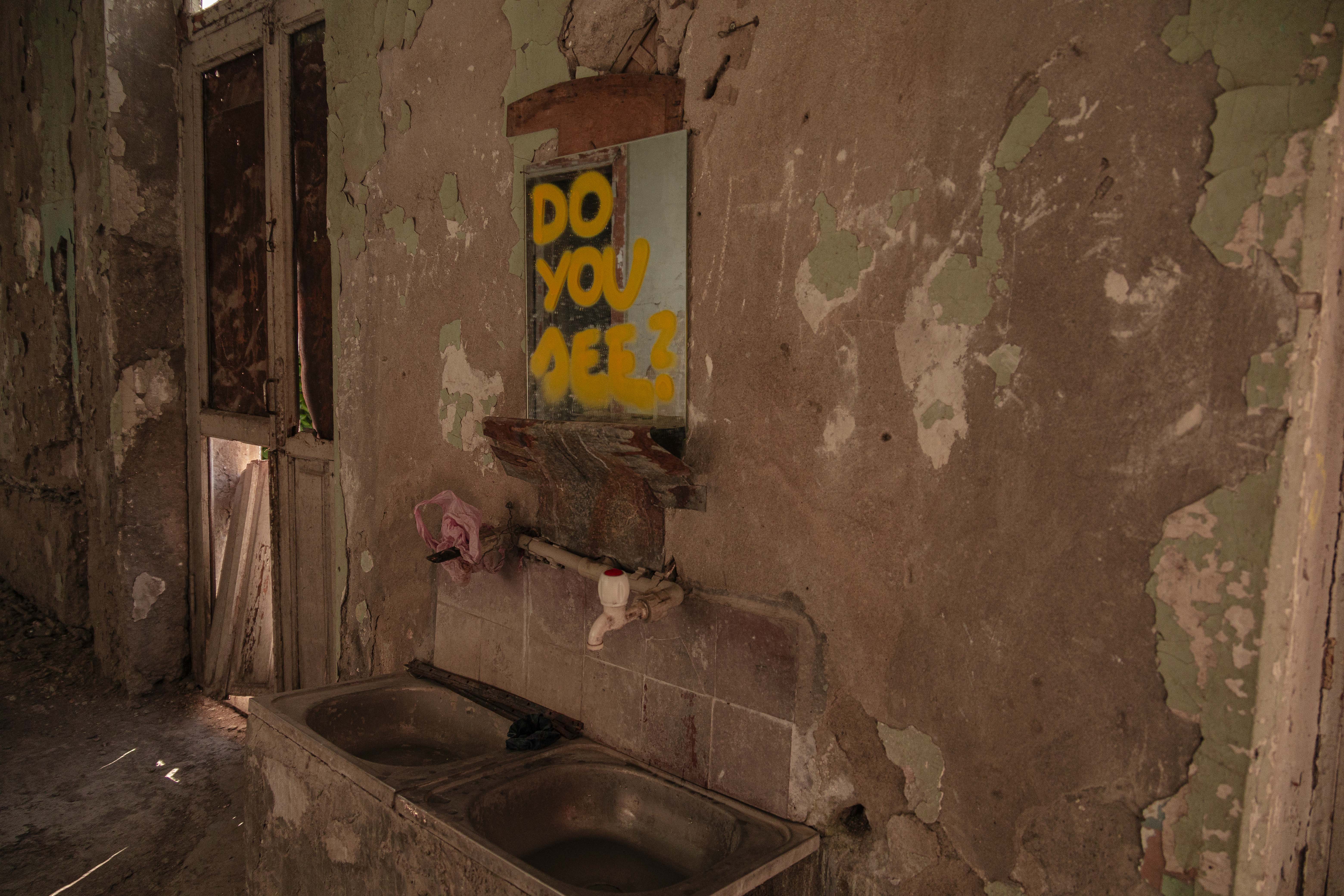 Um dos prédios que visitamos é central, a uma caminhada de restaurantes, e totalmente aberto, sem cerca ou muro. Nos cômodos vazios, muitos restos de reboco. Do lado de fora, a grama era bem aparada, o que mostra que o governo tenta manter o lugar bem cuidado.