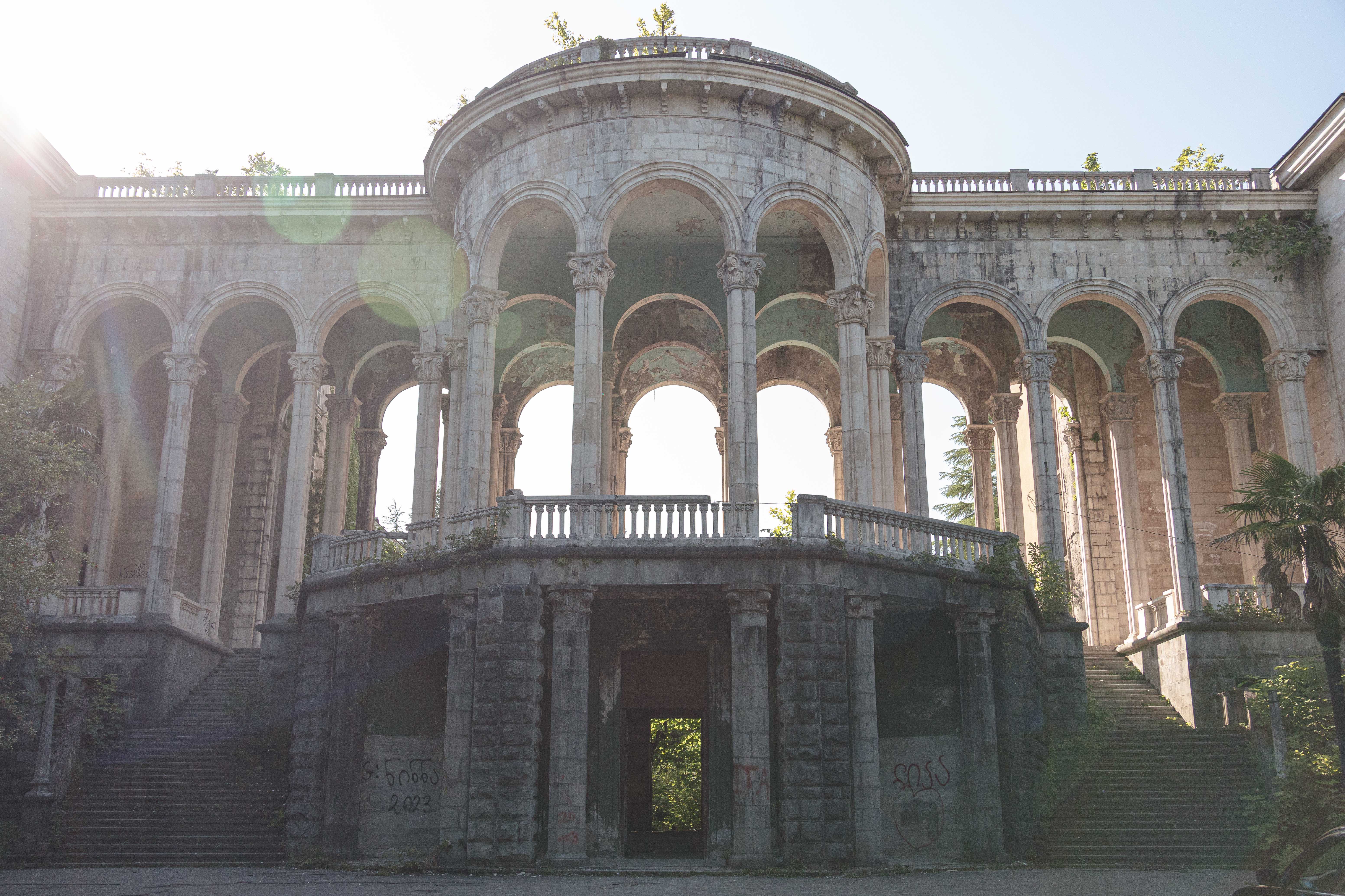 Na sequência, partimos para Tskaltubo, uma charmosa cidade que abriga muitos sanatórios, os spas da época da União Soviética, abandonados. O Faraó adora ver vídeos nas redes sociais sobre lugares antigos e em desuso e se esbaldou ali.