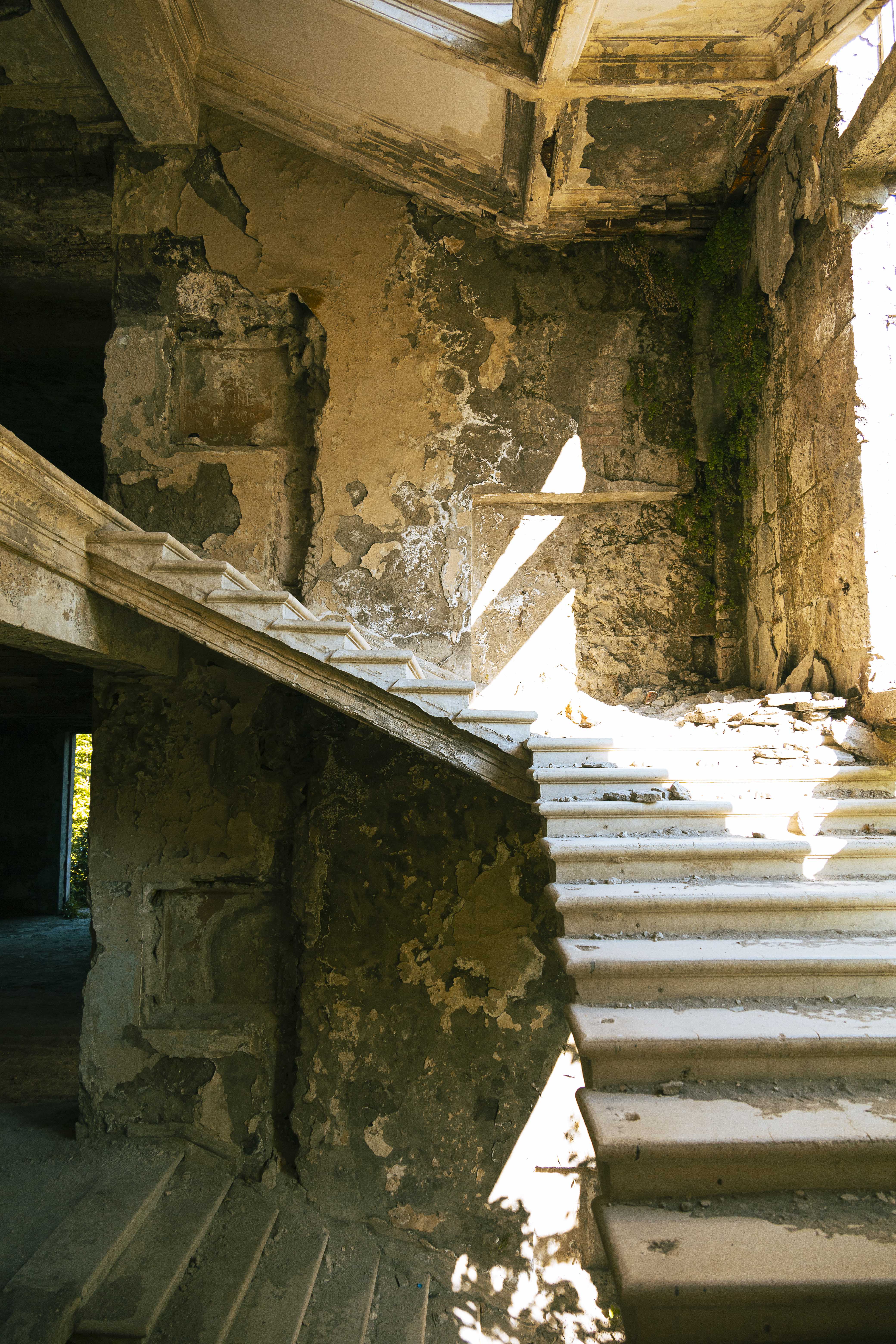 Fomos a outro mais afastado, mas com um intenso ir e vir de curiosos. Exploramos mais esse e andamos pelas escadas sem corrimão, observando como as árvores tomaram conta do lugar. O andar subterrâneo, totalmente escuro e com um grande vazamento d’água, era aterrorizante.