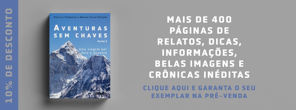 O tantão de histórias que vivemos em 15,5 meses de viagem por Ásia e Oceania não poderia ficar restrito apenas a este blog e às redes sociais, né? A experiência de publicarmos o primeiro livro, o “Aventuras Sem Chaves – Parte 1: Uma Viagem por África e Oriente Médio”, nos motivou a escrevermos a continuação, o “Aventuras Sem Chaves – Parte 2: Uma Viagem por Ásia e Oceania”.