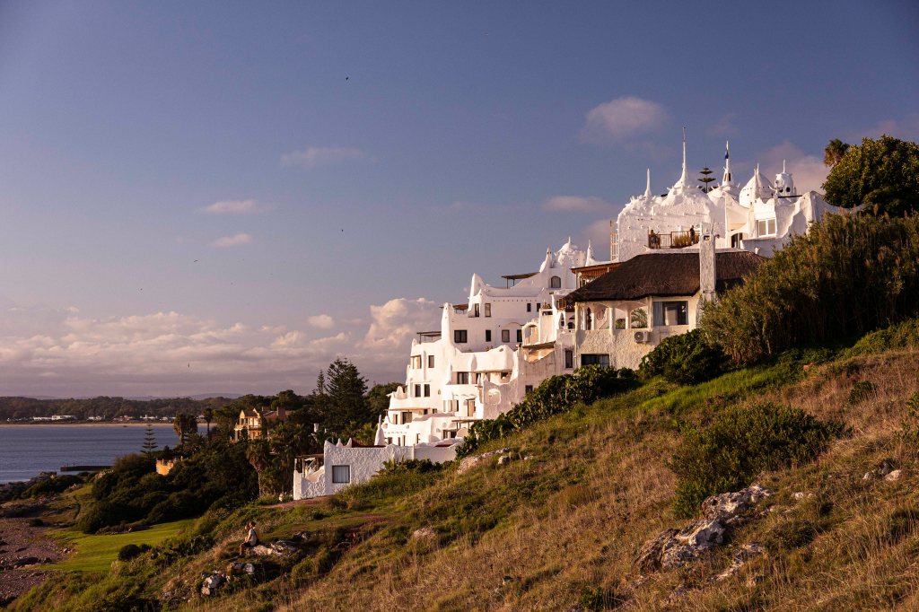 Mesmo que tenhamos pernoitado em Maldonado, a cidade vizinha com cerca de 100 mil habitantes, também num estacionamento em frente ao mar, não pudemos perder a chance de ver o pôr do sol na Casapueblo. O lugar é um museu e galeria construído por Carlos Páez Vilaró. Não entramos lá, pois o passeio dos uruguaios é ficar do lado de fora contemplando a natureza, normalmente acompanhado do mate.